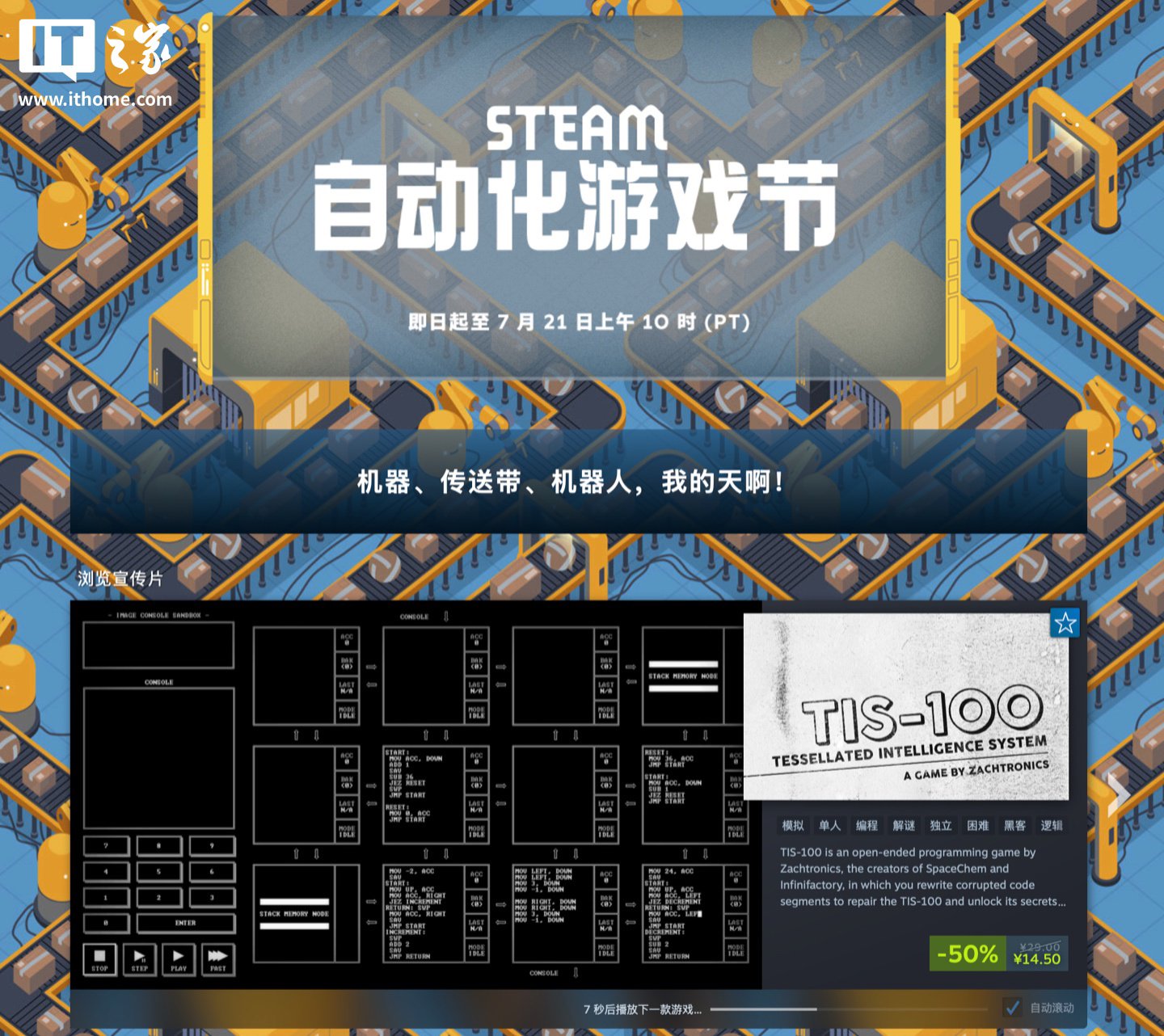 Steam 开启“自动化游戏节”促销,《戴森球计划》8 折 56 元、《幸福工厂》7 折 95.2 元等