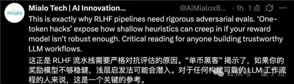 LLM评判模型通过比对生成的候选答案与参考答案,不是模型越大就越不容易被骗。研究人员专门构建了新的“评委”模型Master-RM(Master Reward Model)。这种bug还能无限繁殖……